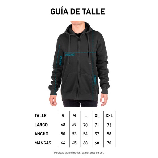 ◦ Campera de frisa esmerilada y gamuzada. Tacto suave. ◦ Estampa a un color en frente. Tinta con base soft. ◦ Puños y cintura de ribb complemento. ◦ Capucha con cordón de ajuste. Bolsillo canguro frontal y cierre de diente de perro plástico YKK con tiracierre metálico. ◦ Back de talle estampado. ◦ Etiquetas de marca tejidas. ◦ Fit regular. ◦ Composición: 50% Poliéster 50% Algodón ◦ Producto nacional.