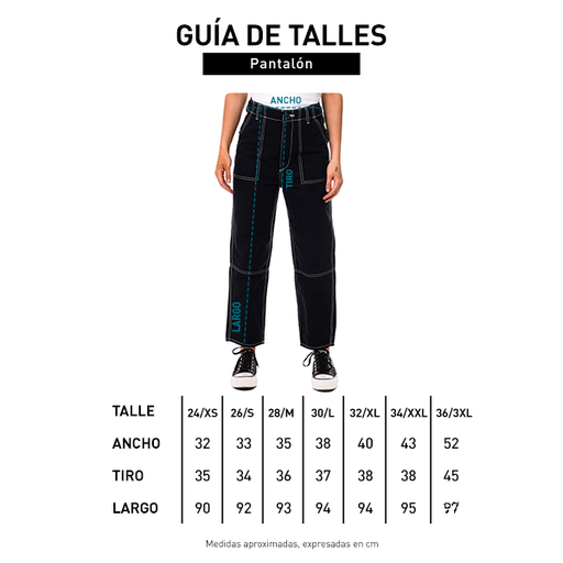 Gabardina 7, 5 oz. 100% algodón. Baggy high fit. Tiro alto. Producto importado xs:24 - s:26 - m:28 - l:30 - xl:32 - xx:34 - 3x:36.